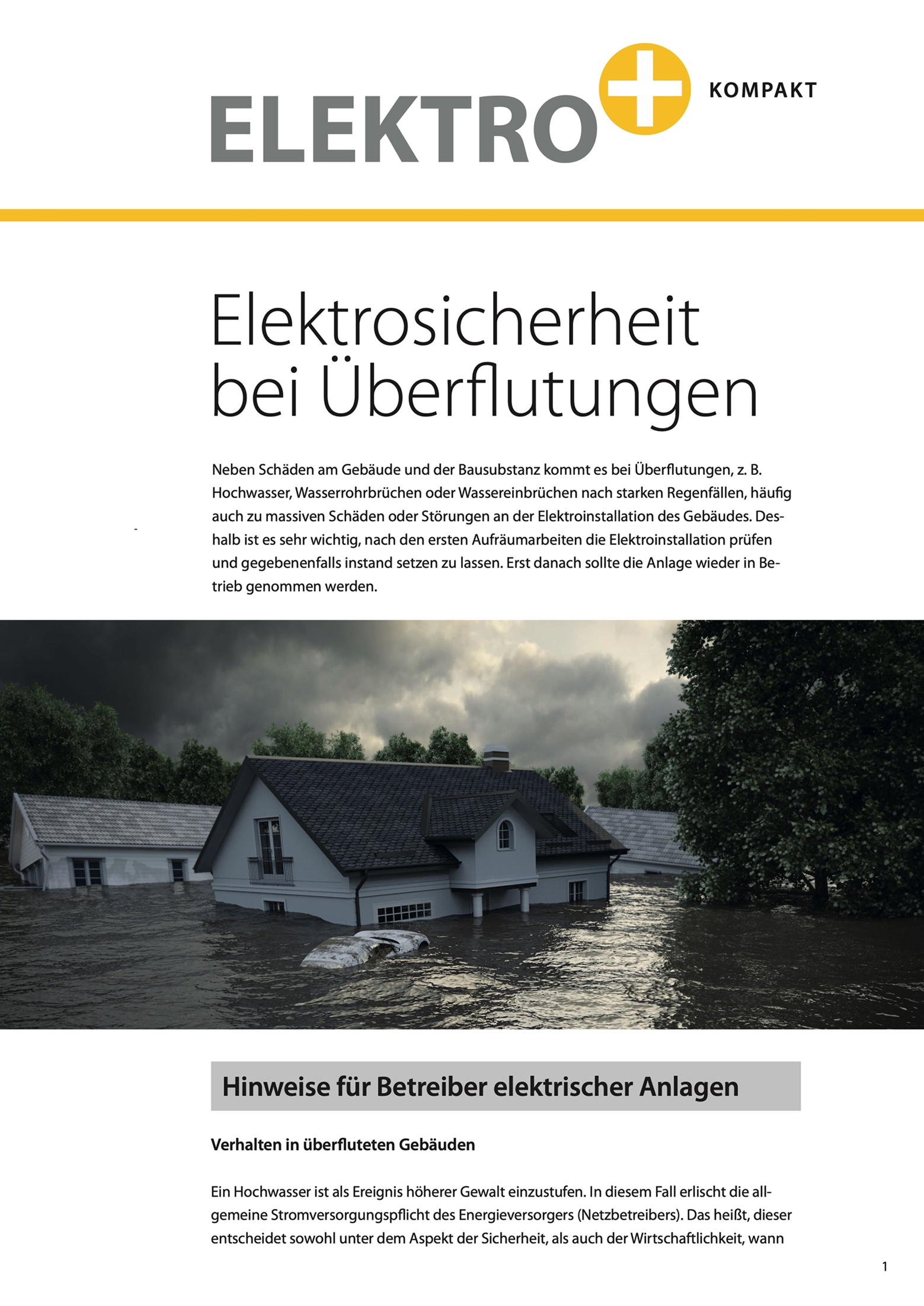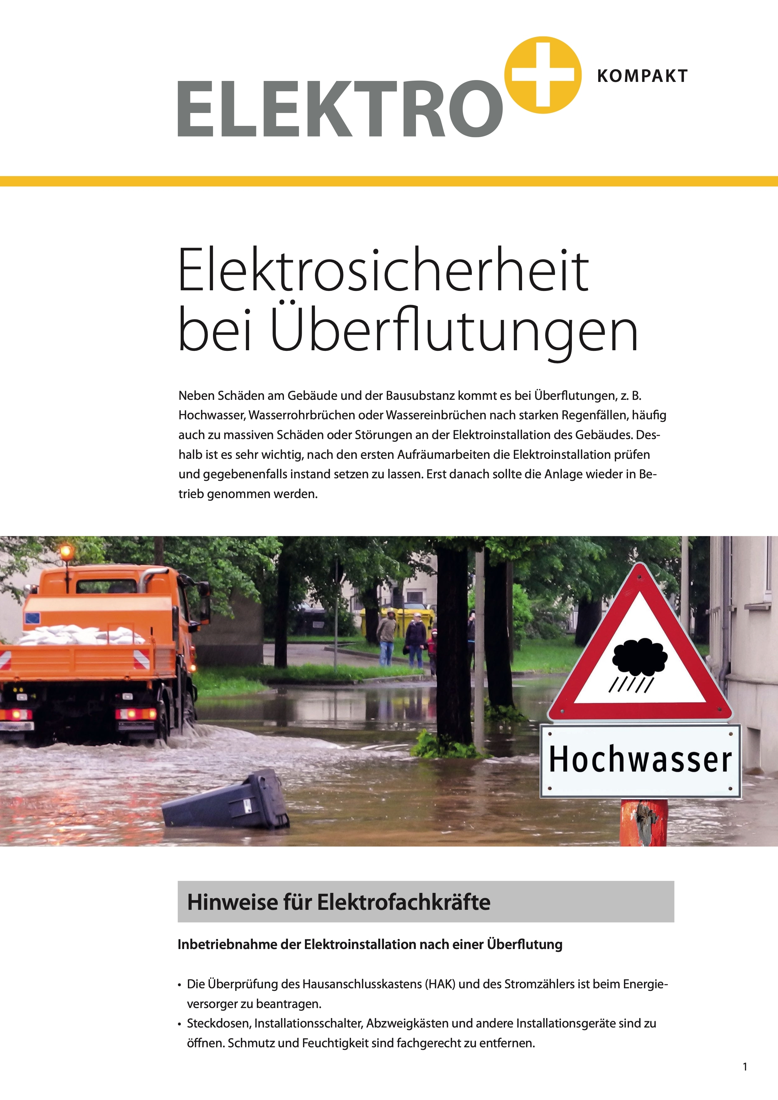 Das Informationsblatt "Elektrosicherheit bei Überflutungen" steht zum Download in zwei Versionen – für Betreiber der Anlage sowie für Fachkräfte – unter www.elektro-plus.com/downloads zur Verfügung. Einen qualifizierten Elektrofachbetrieb in ihrer Nähe finden Betroffene über die Online-Suche auf der Elektro+ Website unter https://www.elektro-plus.com/fachbetriebssuche.