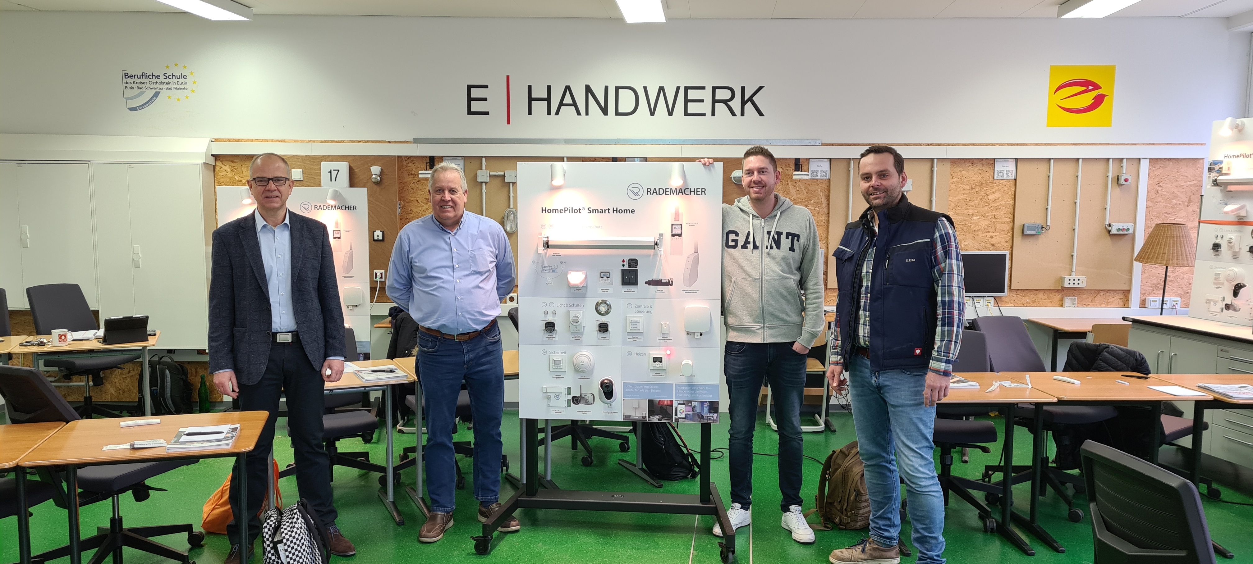 Ziel der Schulung war es, die Auszubildenden des Elektro- und SHK-Handwerks im sicheren Umgang mit den Smart-Home-Komponenten zu schulen und für den Einsatz im Alltag eingeschränkter Personen zu sensibilisieren. „Schule und Handwerk müssen sich dem digitalen Zeitalter stellen, um den Anschluss an den immer schneller werdenden digitalen Wandel nicht zu verpassen“, betonen der Schulleiter der Beruflichen Schule Eutin Christoph Salewski und der Innungsobermeister der Elektroinnung Ostholstein Stefan Erbs und erklären: „Das 2017 an der Beruflichen Schule Eutin entstandene Inklusionskonzept ,Das barrierefreie E-Haus‘ gilt mittlerweile als Meilenstein der beruflichen Bildung.“ Sowohl Schulleitung als auch Auszubildende begrüßten das Konzept und die Umsetzung der gewerkeübergreifenden Veranstaltung von Rademacher und konnten wichtige Inhalte für die Vertiefung des Projektes und die spätere Beratung von Kunden mit körperlichen Einschränkungen für sich gewinnen.