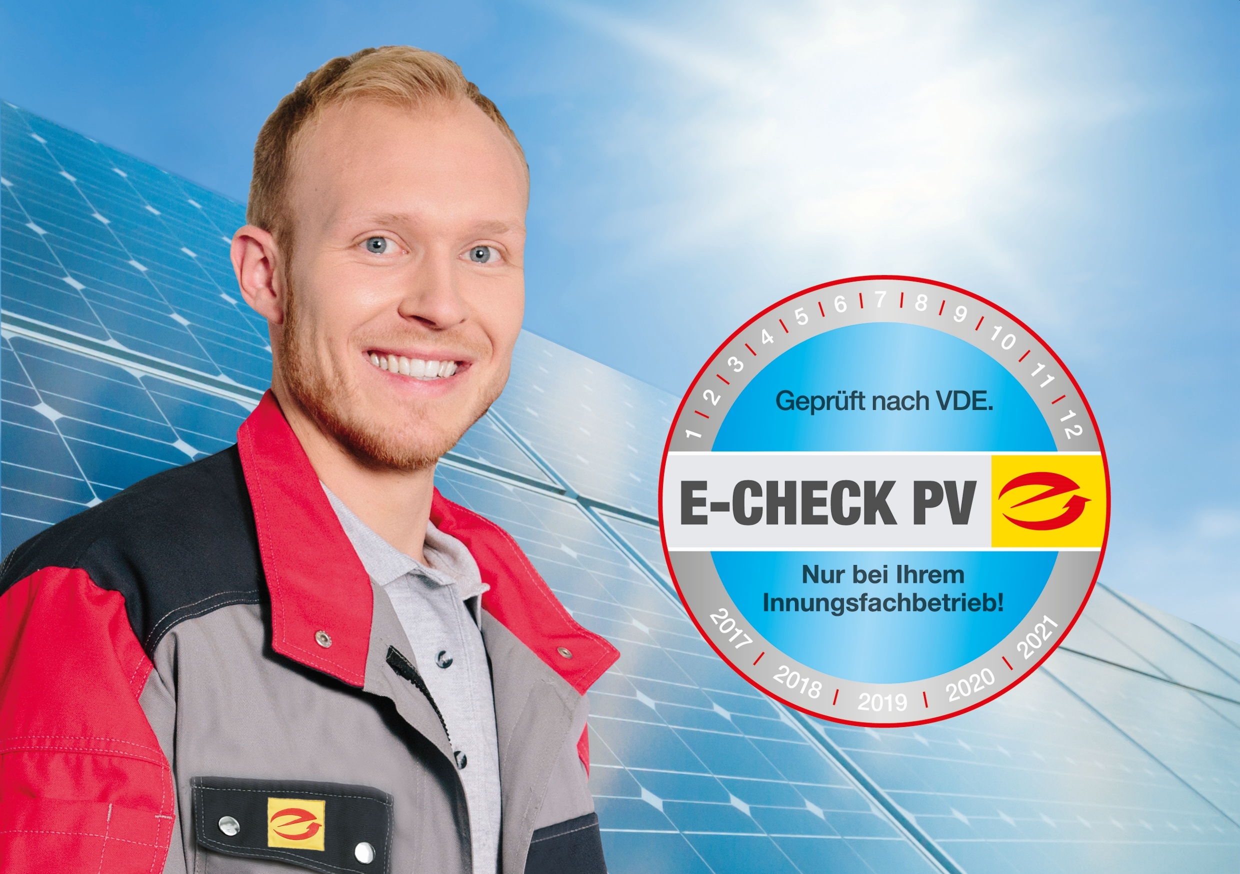 Mit dem E-CHECK PV testen der Fachmann oder die Fachfrau in regelmäßigen Abständen die Funktions- und Leistungsfähigkeit der Photovoltaikanlage und kontrollieren die Wirksamkeit der Schutzeinrichtungen gegen elektrischen Schlag und Überspannung. Die E-CHECK-PV-Plakette und das zugehörige Prüfprotokoll bestätigen den ordnungsgemäßen Zustand. Damit sind Eigentümerinnen und Eigentümer im Ernstfall auch vor eventuellen Schadensersatzansprüchen geschützt, da sie in der Lage sind, gegenüber der Versicherung den technischen Zustand ihrer Anlage nachzuweisen. Zudem beugen sie mit der regelmäßigen Überprüfung möglichen Schäden oder Ausfällen vor und vermeiden teure Reparatur- oder Ersatzkosten.